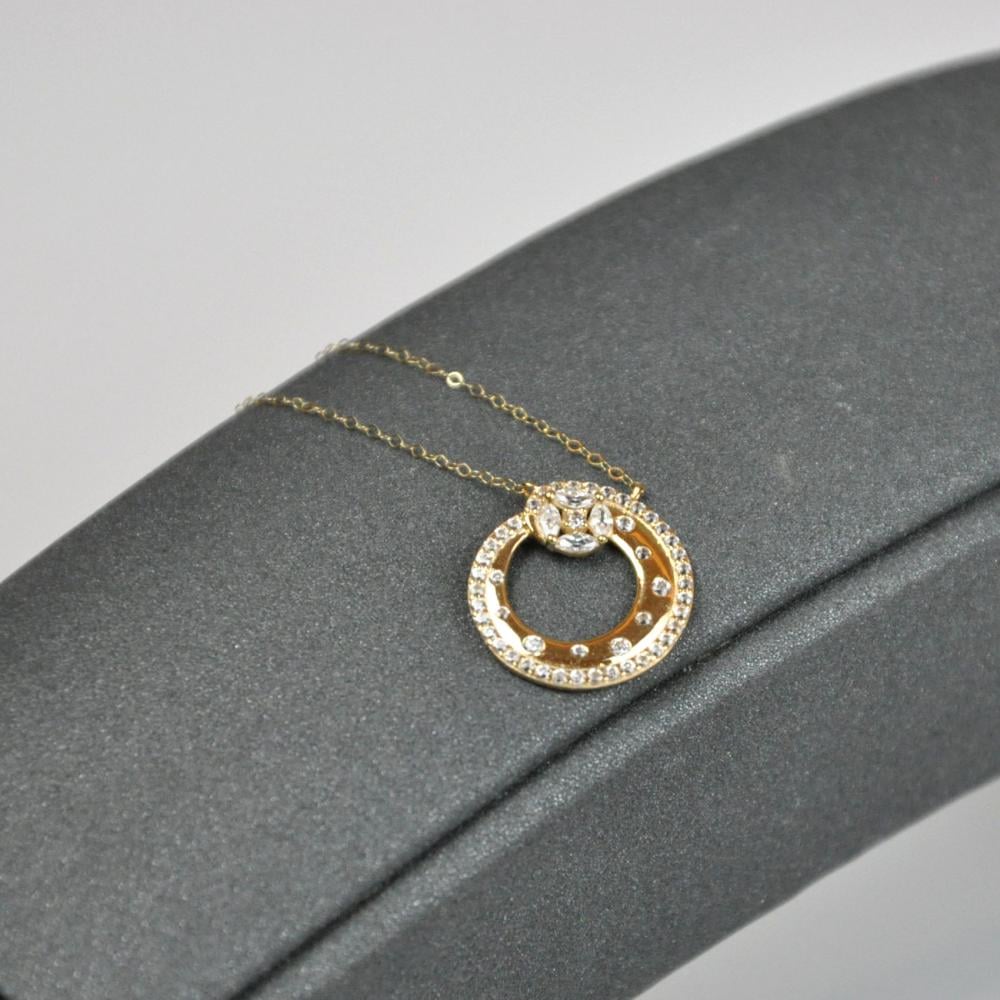 استكملي أناقتك بالحصول على منتج سلسال ذهب تعليقة دائرية مفرغة من متجر الشايع للمجوهرات وهو الذي يأتي بتصميم عصري يجمع بين الحرفية العالية والبساطة في نفس الوقت ليكون إضافة مثالية لمجموعة مجوهراتك.