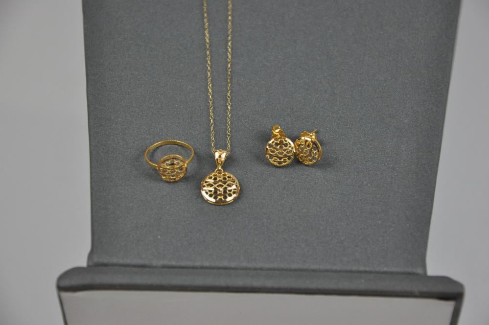 - يقدم الطقم أفضل جودة ولمعانًا دائمًا مع ضمان طول الأمد كونه تم تصميمه من الذهب النقي عيار 21 قيراطًا.