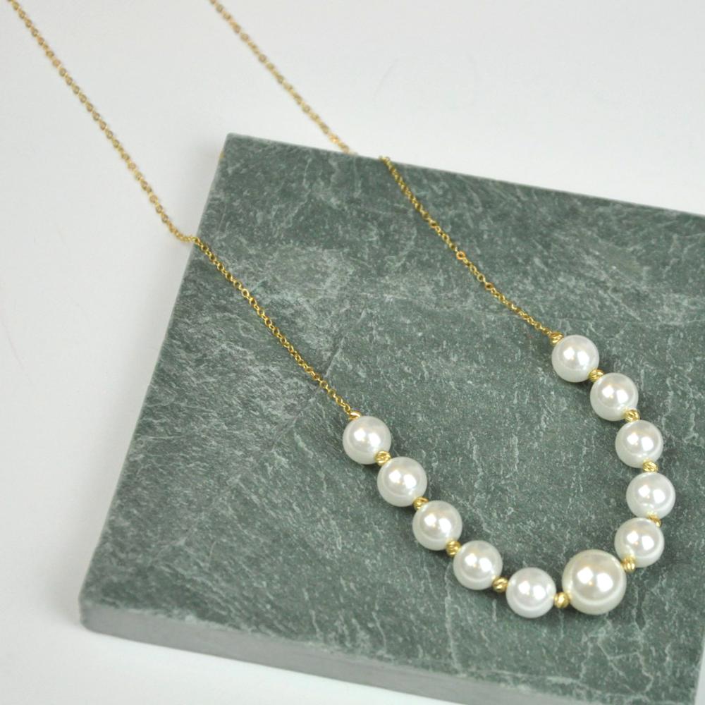 - أولى المميزات التي يأتي بها العقد أنه يوفر لمسة أنثوية راقية كونه يجمع بين رقة اللؤلؤ الأبيض واناقة الذهب الفاخر.