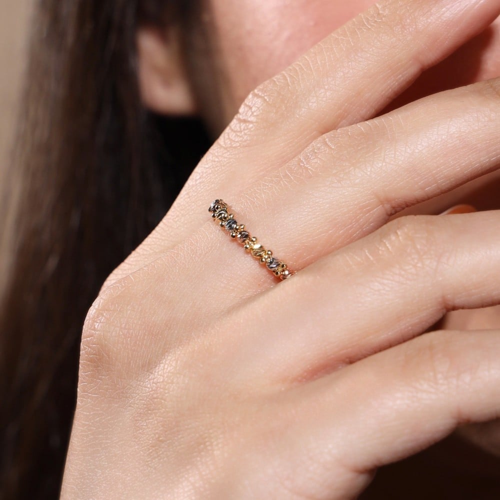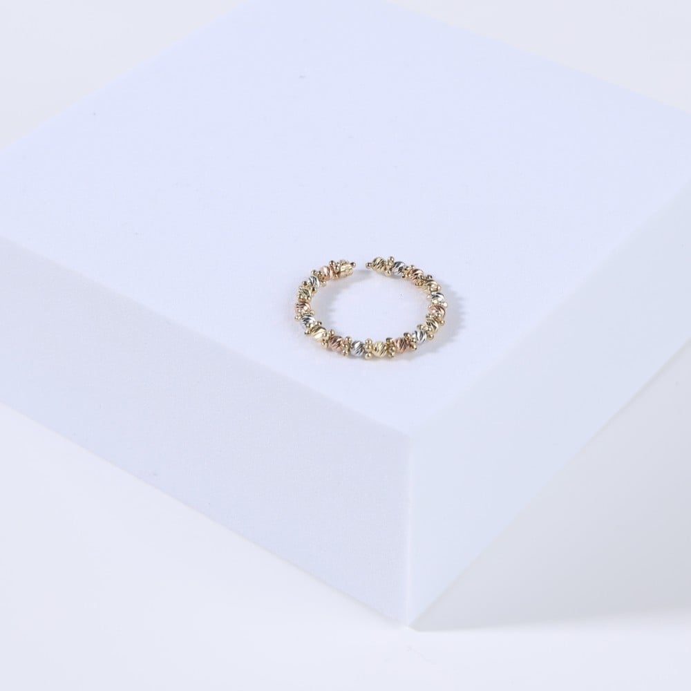 • تم تصميم الخاتم من الذهب الايطالي عيار 18 قيراطًا متعدد الألوان.