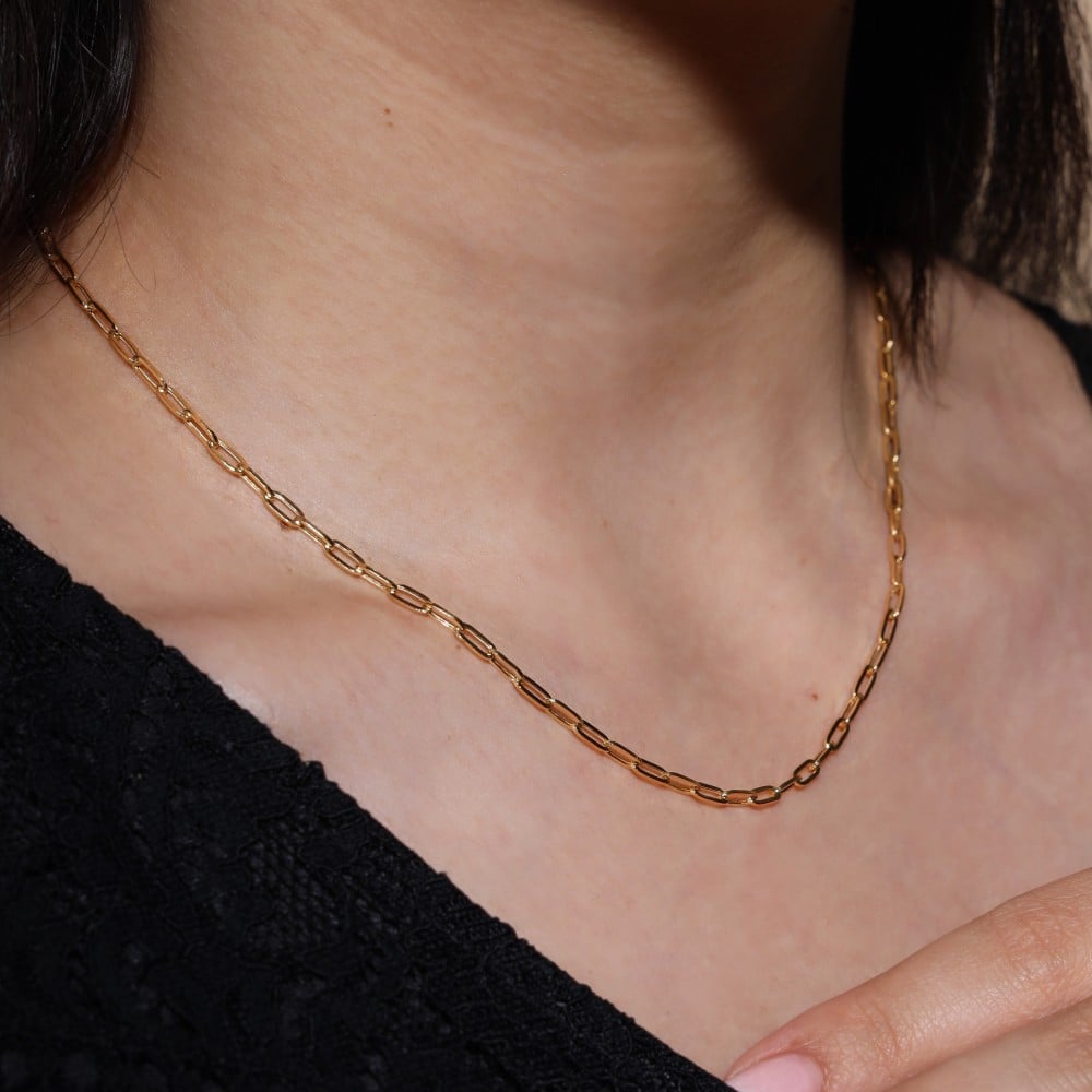 يوفر لك متجر الشايع قطعة سلسلة مميزة تجذب جميع الأنظار وهو عقد ذهب يجمع بين التصميم الكلاسيكي والحداثة بأسلوب متميز بفضل تصميمها الاستثنائي والاهتمام بأدق التفاصيل , مزينة بشكل الجنزير الخالي من الفصوص , يمكن ارتدائها مع فستان أو بلوزة برقبة طويلة أو قصيرة لإبراز جمال تفاصيلها!